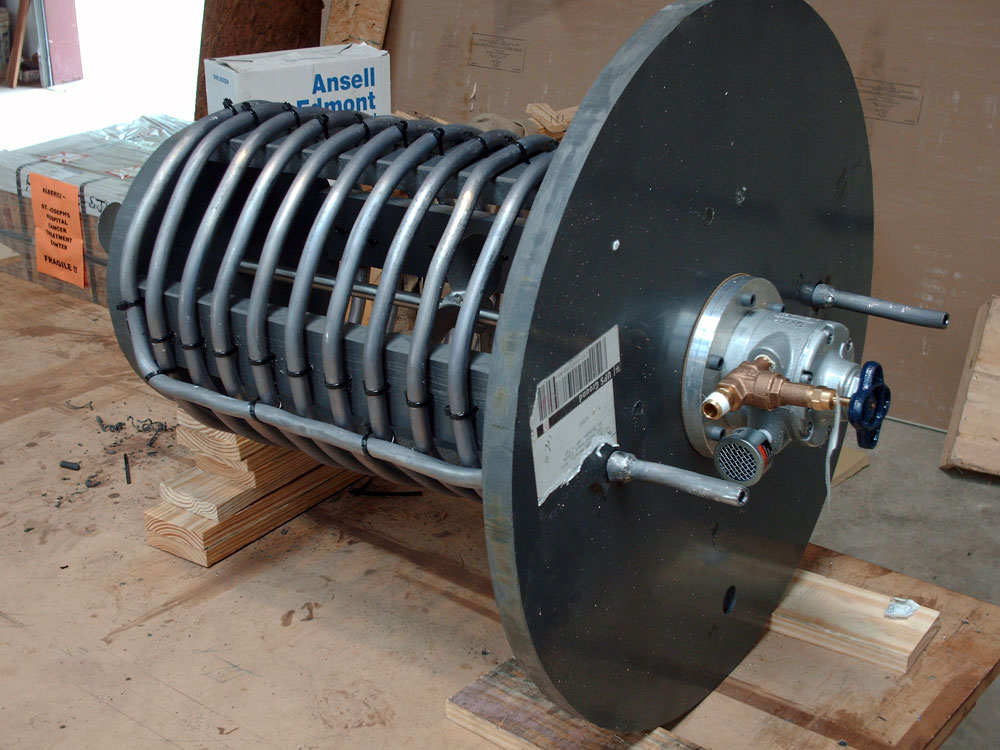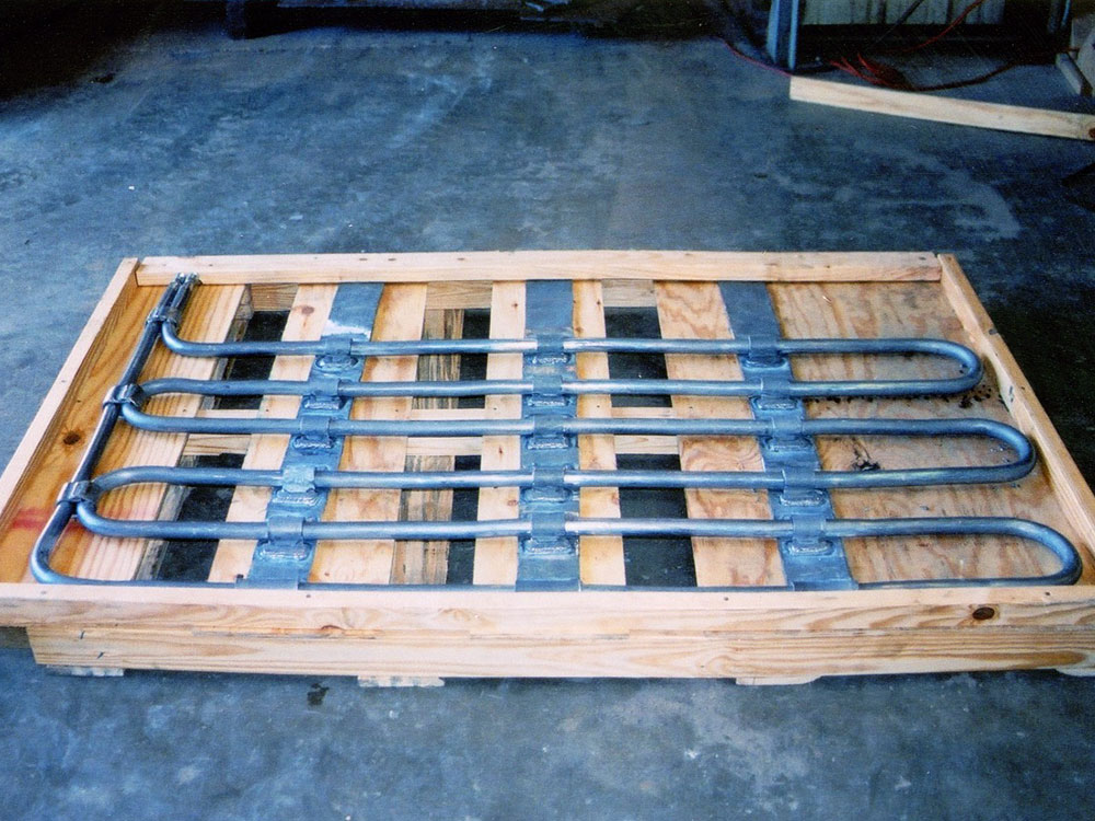 Heating and Cooling Coils are made from extruded lead pipes with solid lead or homogeneously bonded lead supports for anodizing, electroplating, and other specialty applications. There are numerous configurations and designs to consider, each factor dependent upon the application or processes. These designs include but are not limited to: Battery Acid Cell Heat Exchangers, Collapsed Bend, Dished Spiral, Double Helical, Flat Spiral, Gel Acid Mixing, Helical Spiral, and Return Bend.